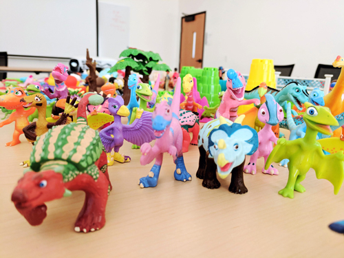 Students choose from a variety of toys to use in their expressive arts projects in class.